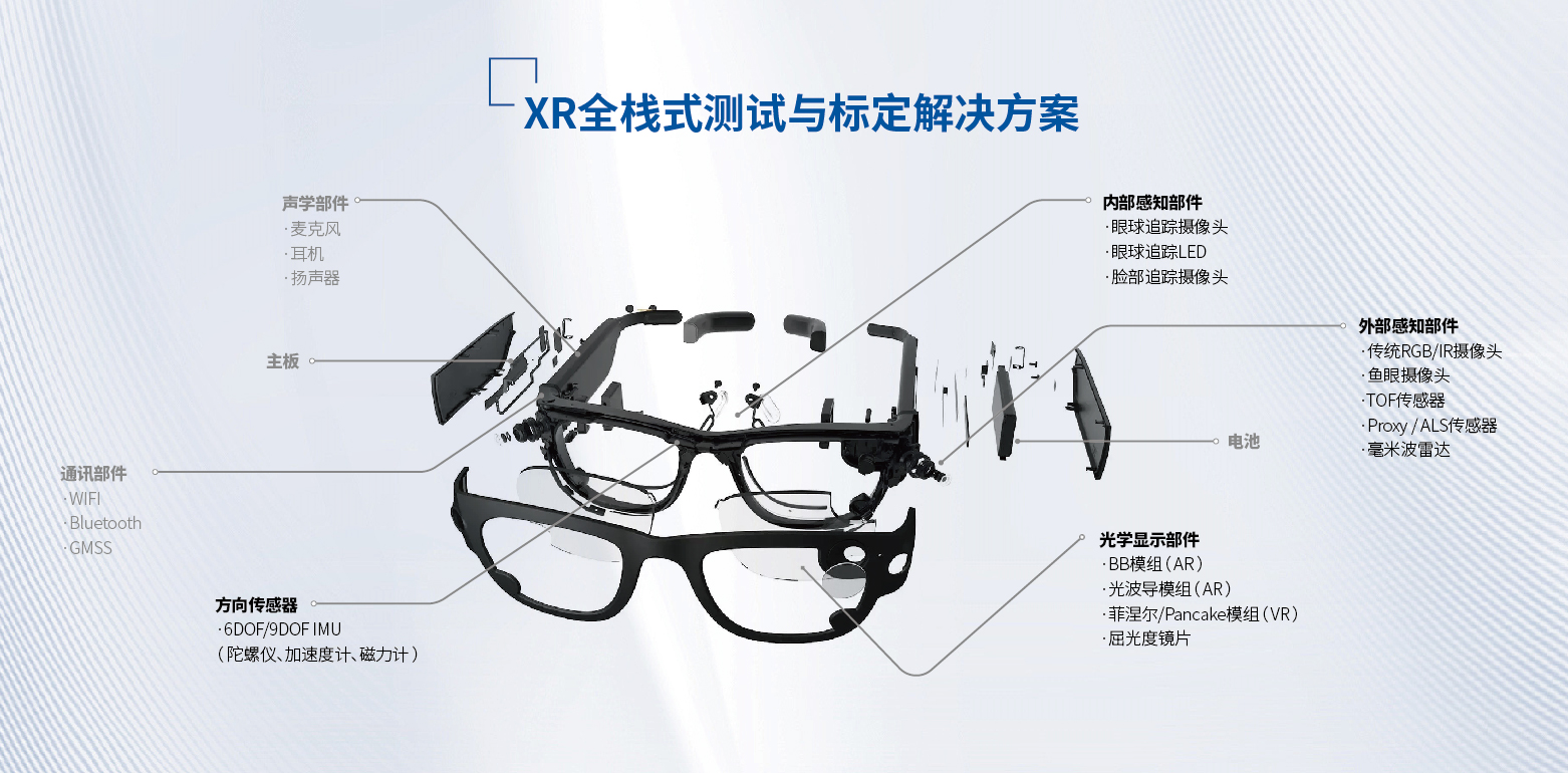 在 XR 測(cè)試與標(biāo)定領(lǐng)域,鷹諾國(guó)際可提供覆蓋內(nèi)部感知部件、外部感知部件、光學(xué)顯示部件、方向傳感器,以及通訊部件、聲學(xué)部件等的整機(jī)、模組、零部件測(cè)試與標(biāo)定解決方案。